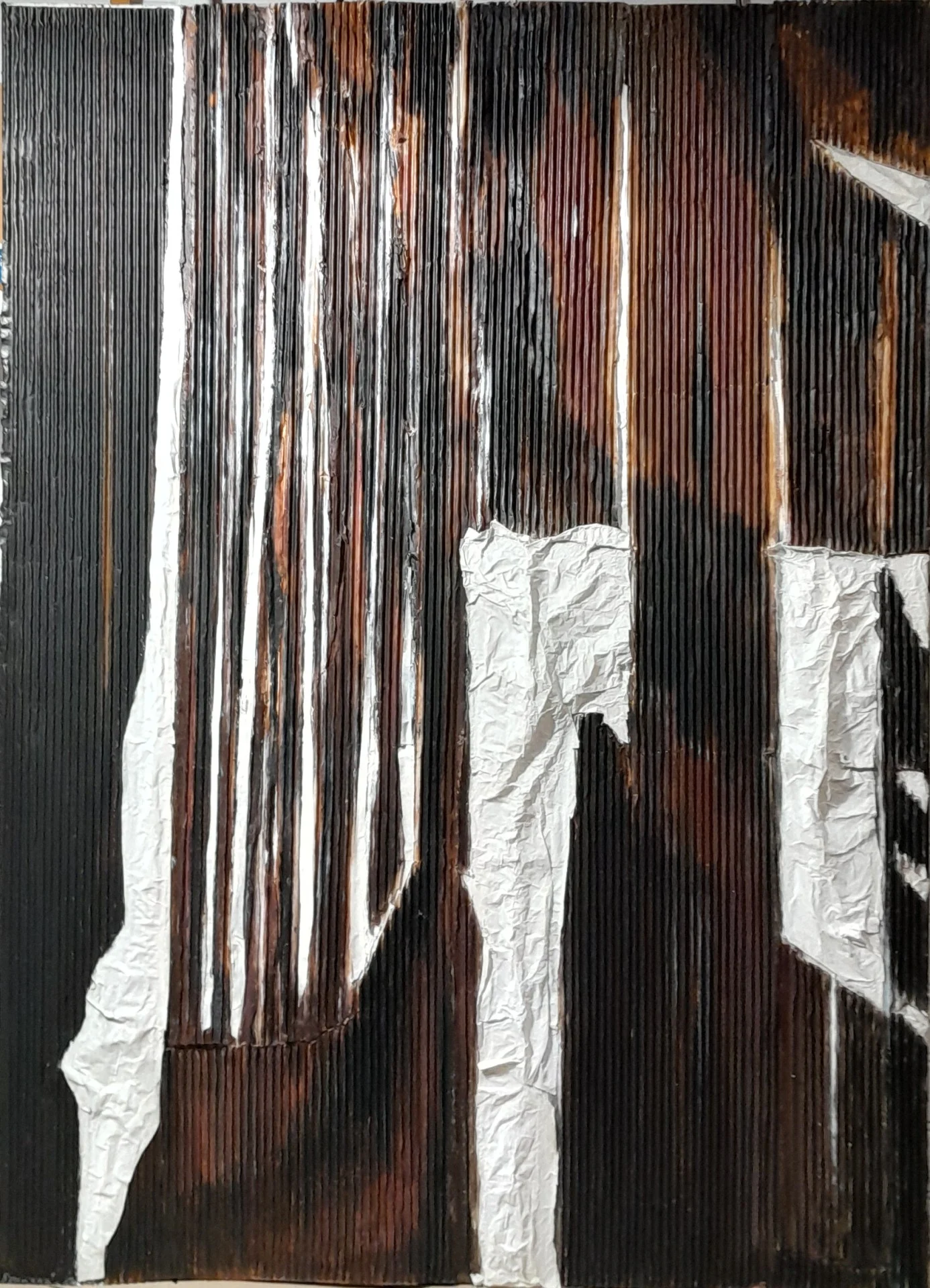 Cart1 100x73 collage carton papier acrylique vernis sur toile