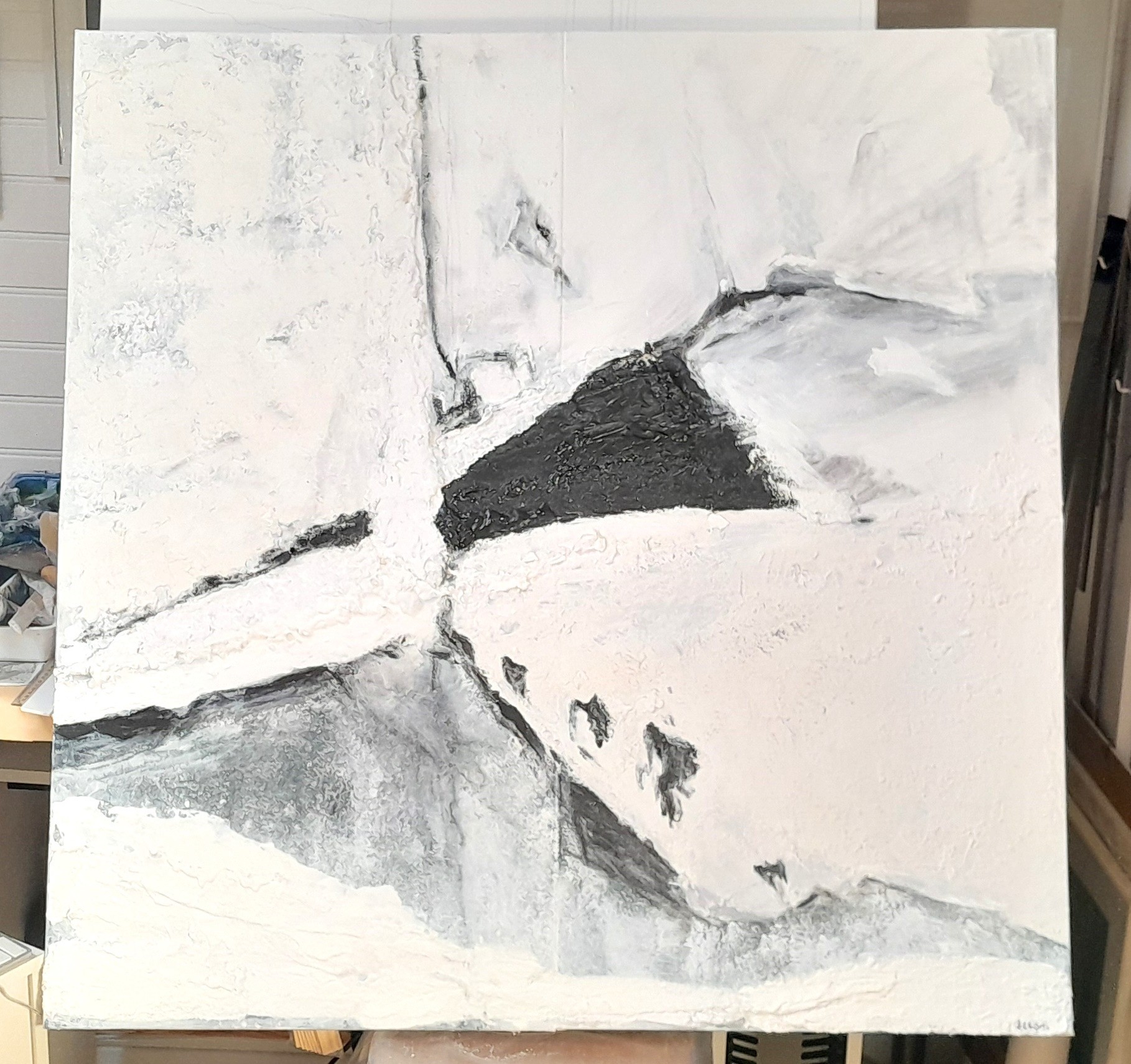 acrylique et matière Carre blanc sur fond blanc 60x80